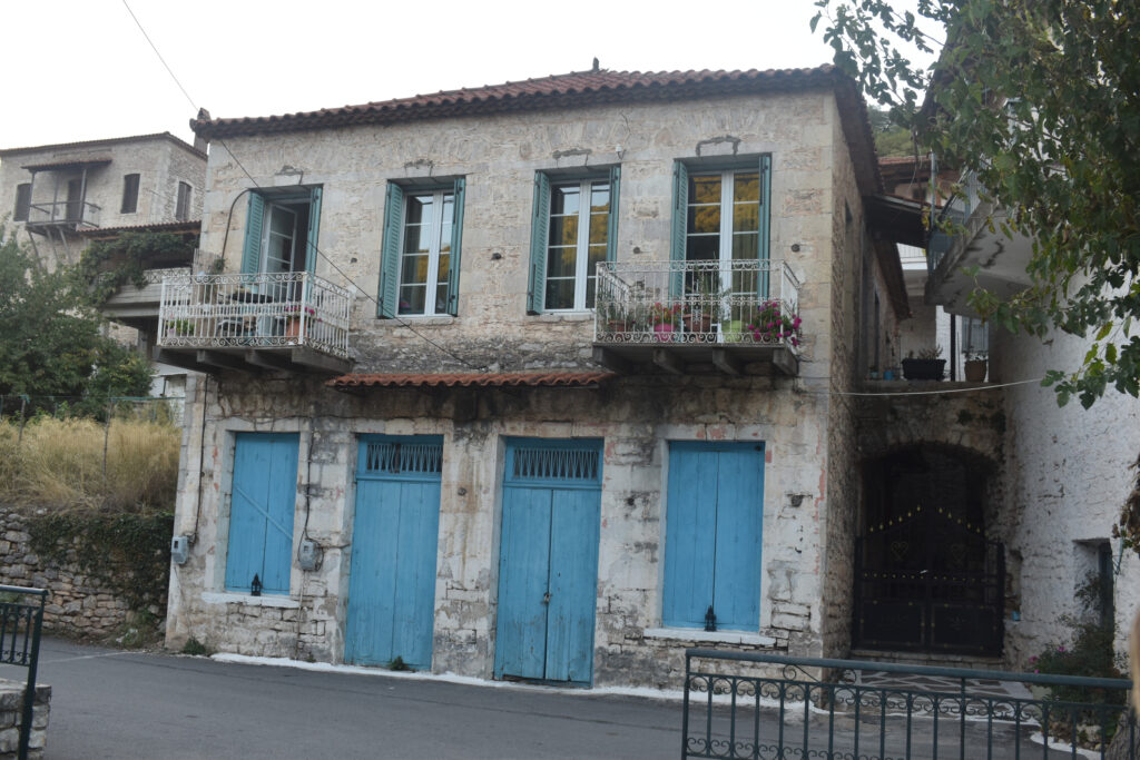 Αρχιτεκτονικά το χωριό μου έκανε μεγάλη εντύπωση. Απο άποψη ύφους ανήκει καθαρά στην παραδοσιακή Αρκαδική -Λαγκαδινή- αρχιτεκτονική ο οικισμός. Όλα τα κτίρια είναι πέτρινα με ξύλινες σκεπές, κουφώματα, πατώματα κλπ ενώ παρότι όλες οι σκεπές είναι σήμερα καλυμμένες με κεραμίδια πρέπει παλιότερα να είχαν σχιστολιθικές πλάκες κρίνοντας απο μερικά ερείπια και την γενικότερη γεωλογία του Αφροδισίου όρους (π.χ. το Δεχούνι, το παλιό Σκούπι και το Βεσίνι που βρίσκονται απο την βορεινή πλευρά του όρους όλα τα σπίτια έχουν πλάκες).