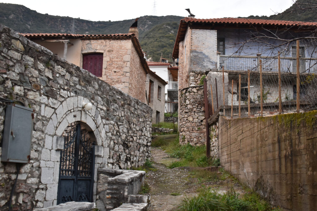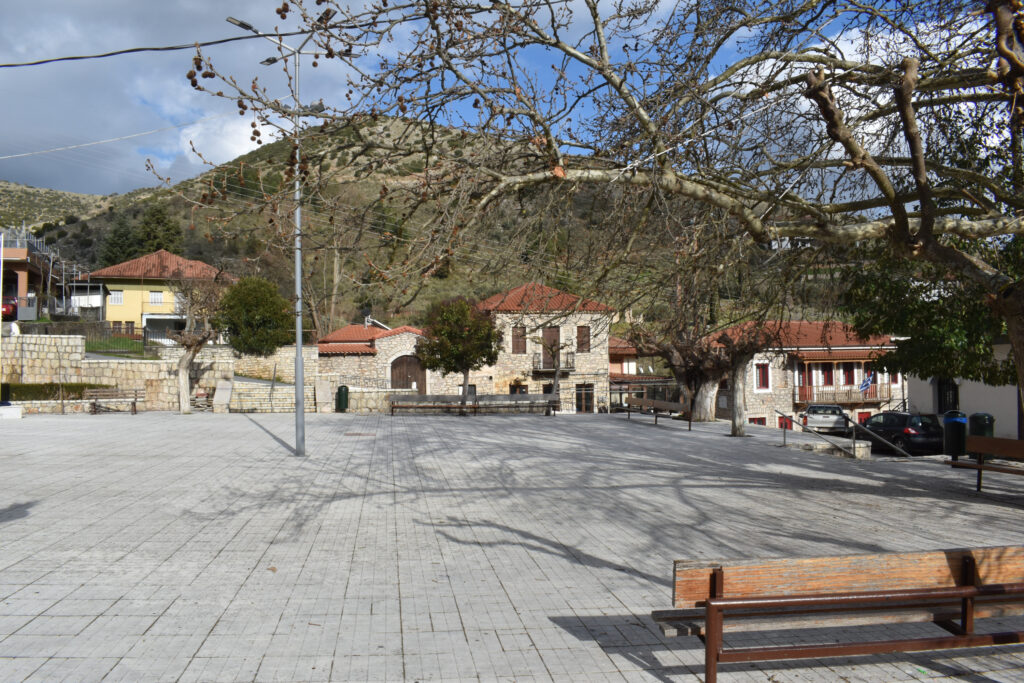 Η πλατεία ευχάριστη κοσμείται με μεγάλα πλατάνια και περικυκλώνεται από ταβέρνες και το καφενείο. Είδαμε κόσμο με΄σα στα μαγαζιά ενώ ένα μικρό παιδί έπαιζε στην πλατεία, ανάμνηση άλλων εποχών. Περπατώντας για λίγη ώρα στα στενά του χωριού διέκρινα αρκετά σπίτια να κατοικούνται αλλά και αρκετά ερειπωμένα. Χάρηκα για την ζωντάνια αλλα στεναχωρήθηκε γιατί ξέρω πως αυτή η «ζωντάνια» δεν είναι παρά ένα κλάσμα των περασμένων εποχών. Αρχιτεκτονικά πάντως το χωριό έχει πολλά να προσφέρει, παρά τις συνήθεις ακαλαίσθητες παρεμβάσεις και την εγκατάλειψη σε αρκετά σημεία. Δεν μπόρεσα να βρω κάποιο συγκεκριμένο αρχοντικό αλλά βρήκα την αρχοντική συνοικία στην δυτική πλευρά του χωριού με αρκετά τρίπατα καλοκτισμένα σπίτια με ευρύχωρες αυλές, εκ των οποίων το ένα έχει γίνει ξενώνας. Η νύχτα είχε πλέον πλησιάσει πολύ κοντά και κρύος αέρας ήρθε από το ποτάμι, οπότε αποφασίσαμε να πάρουμε τον δρόμο του γυρισμού.