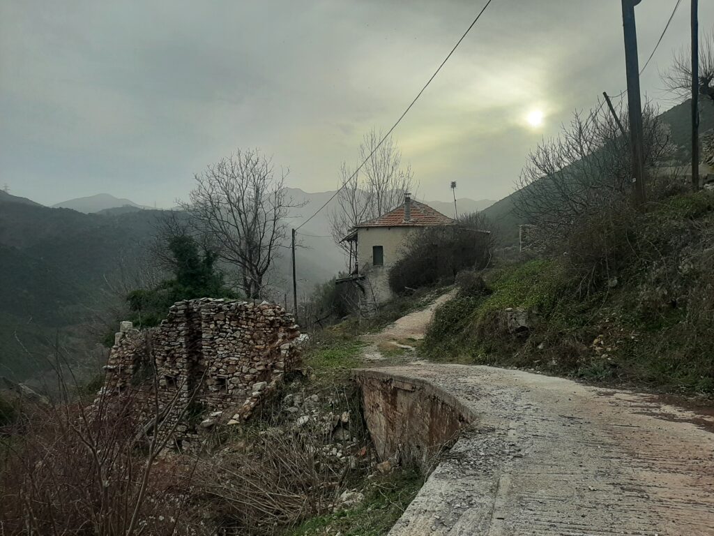 Η εικόνα της ερήμωσης και της εγκατάλειψης, συνηθισμένο θέαμα στους επισκέπτες της ελληνικής υπαίθρου, ήταν διάχυτη. Κι’ όμως, κάποτε σε αυτό το μικρό χωριουδάκι (που θα συνδεόταν με τον υπόλοιπο κόσμο με μουλάρια και γαϊδούρια) θα έμεναν οικογένειες ολόκληρες, στα στενά σοκάκια του θα ακούγονταν παιδικές φωνές και στις αυλές ομιλίες και γέλια. Ο τρόπος που ζούσαν οι κάτοικοι της εποχής εκείνης ίσως και να προκαλεί αποτροπιασμό στον ένοικο της μεγάλης πόλης, που γνωρίζει μόνο ένα στενόχωρο κλουβί που το αποκαλεί “διαμέρισμα” αλλά έχει όλα τα “κομφόρ”, και βρίσκει εύκολα ανέσεις, όπως κομμωτήρια, μανικουρίστες, μπαράκια, σουβλατζίδικα και, βέβαια, ετοιματζίδικη, επεξεργασμένη τροφή στα σούπερ μάρκετ και παχυντικές λιχουδιές που καταφθάνουν με ντιλίβερι! Το νεκροταφείο, όμως, στην κορυφή του οικισμού δείχνει ότι μια χαρά ζούσαν οι κάτοικοι αφού ο μέσος όρος ηλικίας των αποθανόντων είναι μεγάλος.