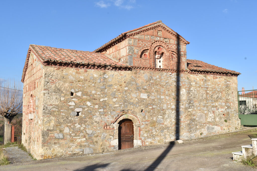Στην πλατεία επισκέφθηκα τους Άγιους Απόστολους που ανάγονται στον 15ο αιώνα και στα χρόνια της ακμής του Δεσποτάτου του Μυστρά στο οποίο και ανήκε το χωριό. Συνδυάζουν τον τύπο της τρικλιτης βασιλικής στο ισόγειο με αυτού του σταυροειδή εγγεγραμμένου στον όροφο. Παρόμοιοι ναοί υπάρχουν και στον Μυστρά που φαίνεται να προτιμήθηκαν ιδιαίτερα από τους Παλαιολόγους. Εξωτερικά η εκκλησία είναι ανεπίχριστη με απλή τούβλινη διακόσμηση και κτισμένη από αργολιθοδομή. Εσωτερικά δεν μπόρεσα να την επισκεφθώ. Είναι ανακαινισμένη αν και υπάρχουν τμήματα της που δεν έχουν ακόμη ολοκληρωθεί.