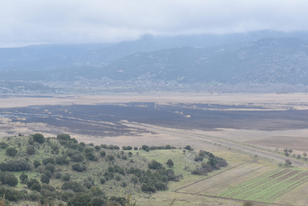 Όσο πλησιάζει κανείς προς την Νεμέα τόσο πληθαίνουν τα καλλιεργούμενα χωράφια, κυρίως με αμπέλια. Φαίνεται πως η διεθνής καταξίωση του κρασιού της περιοχής και οι εξαγωγές έχουν καταφέρει να κρατήσουν το κόσμο στον τόπου του και να επενδύσουν σε αυτόν. Είδαμε επιτέλους και μερικά μαντριά να μας υπενθυμίζουν την μακρά κτηνοτροφική παράδοση της Πελοποννήσου και πήραμε τον δρόμο της Στυμφαλία. Δεξιά και αριστερά μεγάλα ορύγματα, αδιαμφισβήτητα για την δημιουργία του δρόμου. Σε λίγο μπροστά μας η θρυλική λίμνη. Αν και πρόκειται για μία εξαιρετικά ρηχή λίμνη που το καλοκαίρι ξεραίνεται μερικώς είναι γνωστή εξαιτίας της μυθολογίας που την περιβάλλει. Η περιοχή είναι ελαφρώς ορεινή με το οροπέδιο της Στυμφαλίας να είναι και αυτό καρστικό. Η διαφορά όμως με πριν είναι πως εδώ σχεδόν όλα τα χωράφια αξιοποιούνται και η περιοχή είναι περισσότερο κατοικημένη. Μπροστά μας η περίφημη Ζήρεια. Η κορυφή της ήταν καλυμμένη από πυκνά σύννεφα και δεν φαινόταν. Στρίψαμε αριστερά προς Λαύκα.