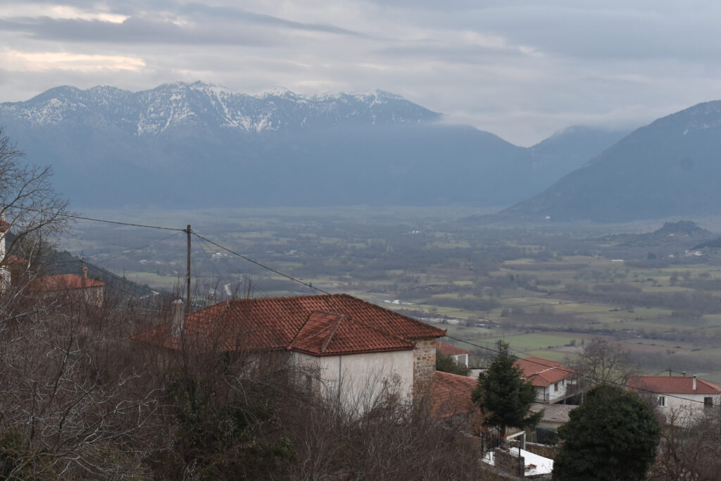 Ο καινούργιος δρόμος είναι σίγουρα πολύ πιο βολικός από τον παλιό – που όμως είναι πιο γραφικός. Τα πουρνάρια άρχισαν να αντικαθίστανται από έλατα όπως ανεβαίναμε. Η χιονοκάλυψη ήταν ψηλά ωστόσο δεν υπήρχε χιόνι στον δρόμο. Σε λίγο αντικρίσαμε στην Καστανιά. Το χωριό δεν έχει κάτι αξιόλογο να προσφέρει σε ότι αφορά την παραδοσιακή αρχιτεκτονική, έχει βανδαλιστεί ανελέητα. Έχει ωστόσο μία καταπληκτική τοποθεσία με θέα επάνω σε όλο το οροπέδιο της Στυμφαλίας και ακόμη πιο μακριά. Διαθέτει πολλά νερά. Πλέον φθάναμε στον Φενεό. Ανεβήκαμε στο διάσελο που χωρίζει τα δύο οροπέδια και άρχισε η κατάβαση. Είχε πολλά αμάξια από την αντίθετη κατεύθυνση: ήταν κυρίως Αθηναίοι που γύριζαν στο «Κλεινόν άστυ» μετά από ένα παρασκευοσαββατοκύριακο στον Φενεό που έχει τα τελευταία αναπτυχθεί τουριστικά. Τα έλατα ελάττωσαν και πάλι άρχισαν τα πουρνάρια και τα λιβάδια. Περάσαμε γρήγορα την Μοσιά, το Μεσινό και ύστερα την Γκούρα.